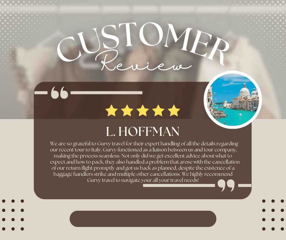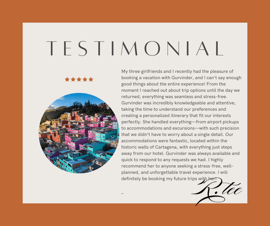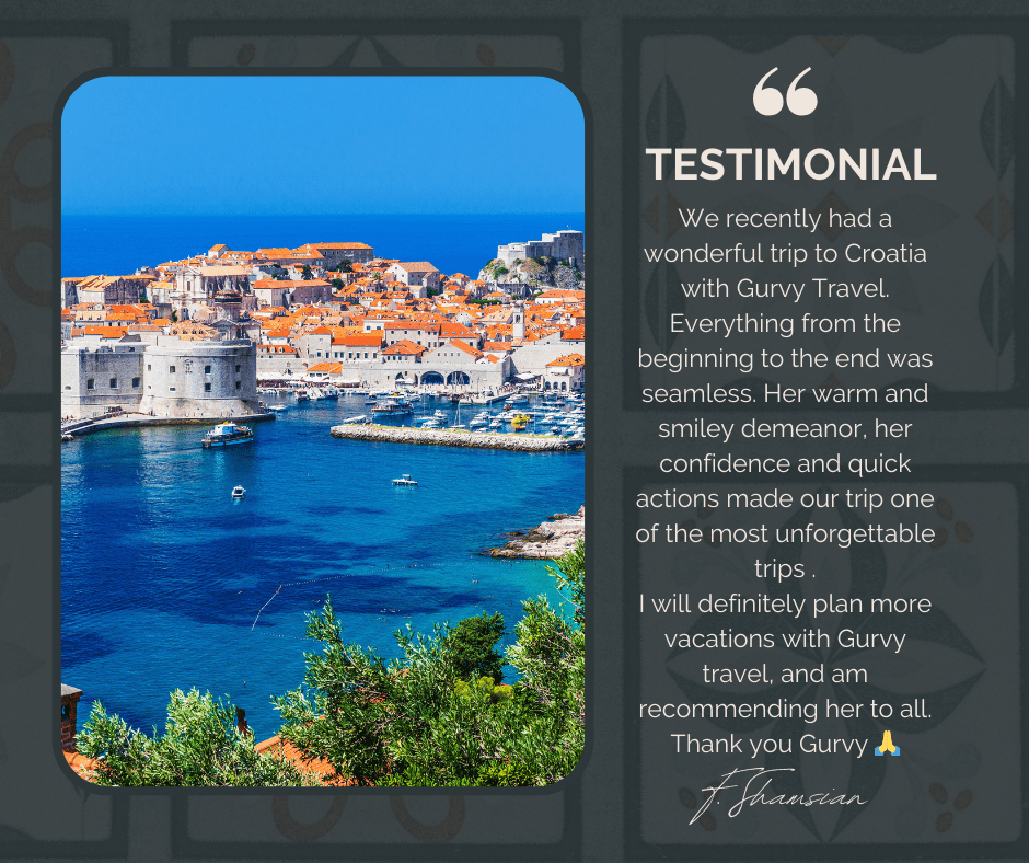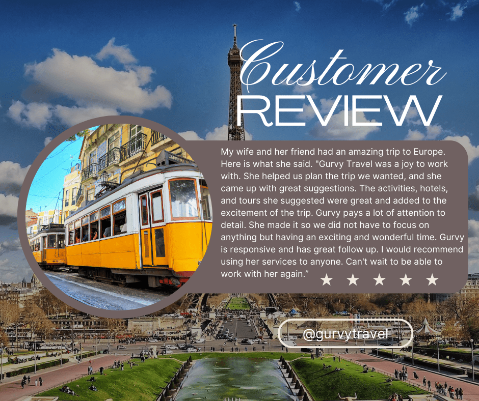 Could you share a few words about your experience with Gurvy Travel? Your feedback means the world to me and helps grow my small business. Prospective travelers trust the voices of happy clients like you way more than anything I could say about myself!